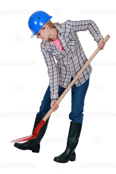 Женщина копает лопатой