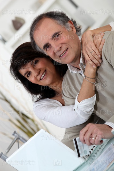 Супружеская пара делает покупки онлайн