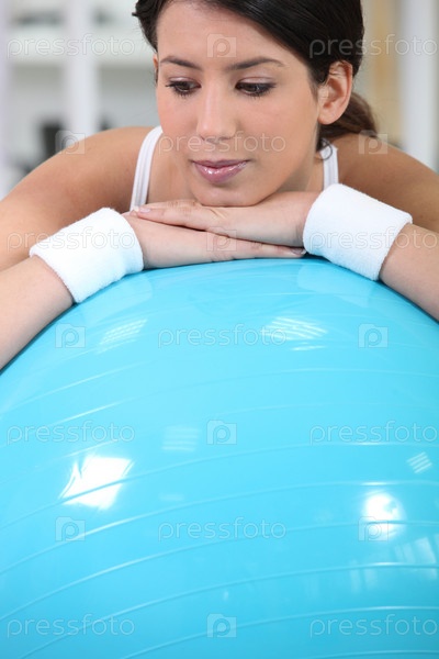 Молодая женщина занимается на шаре в тренажерном зале