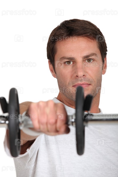 Мужчина с гантелей