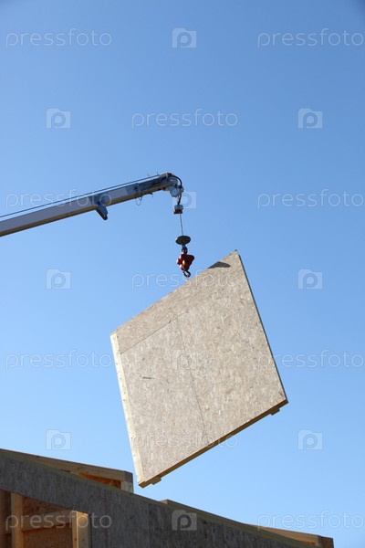 Кран поднимает панель