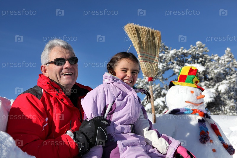 Отец и дочь сделали снеговика