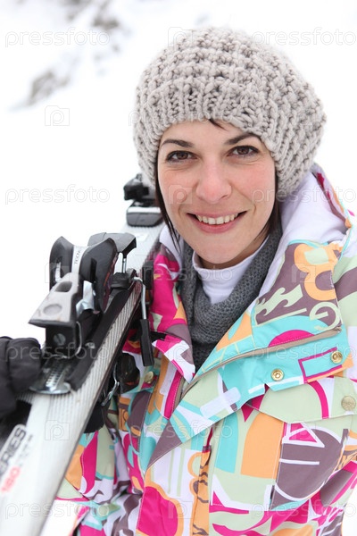 Портрет красивой женщины на горнолыжном курорте