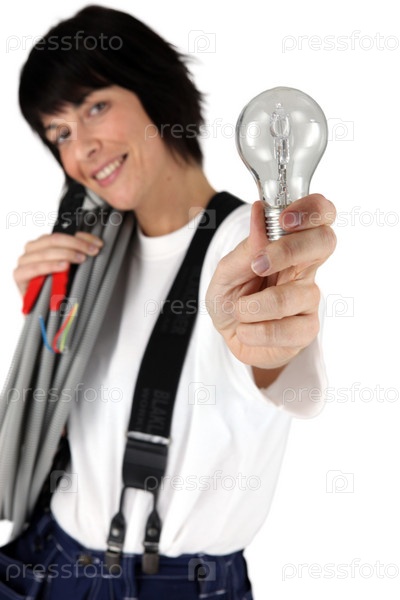 Женщина-электрик с лампочкой