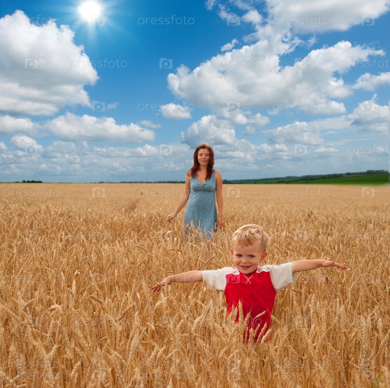 Ребенок и мать в поле