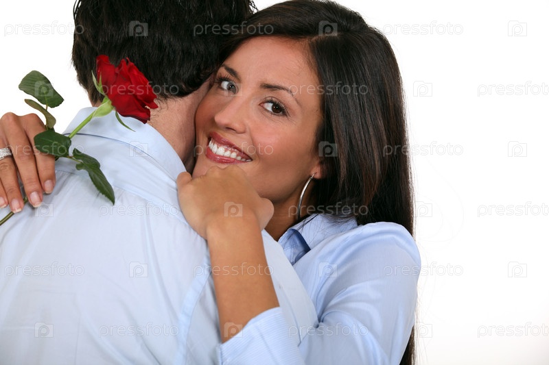 Пара с розой в руке