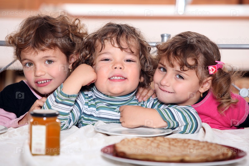 Три сестры наслаждаются блинами