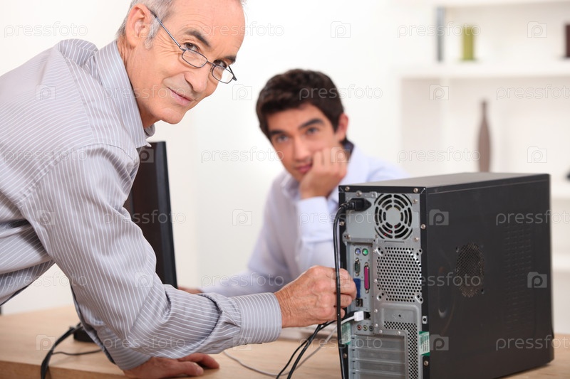 Отец настраивает компьютер
