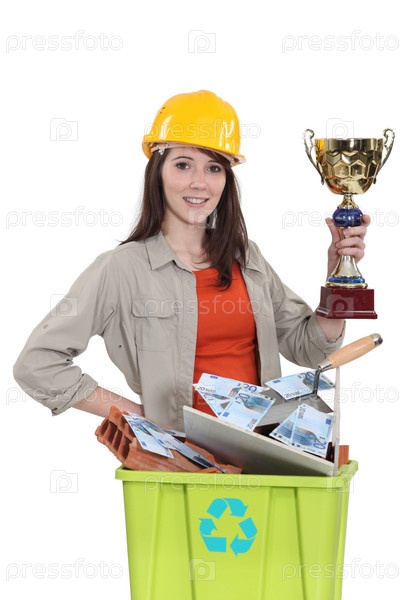 Женщина-рабочий с золотым кубком