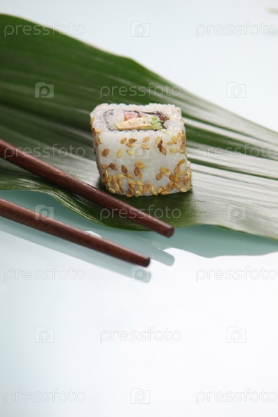 Суши на зеленом листе