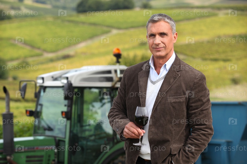 Владелец виноградника с бокалом вина