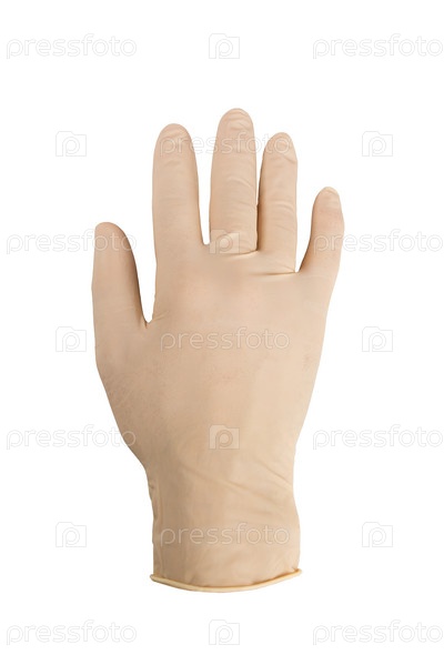 Белая латексная перчатка на мужской руке