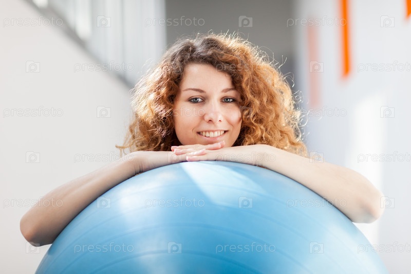 Молодая женщина делает упражнение с мячом