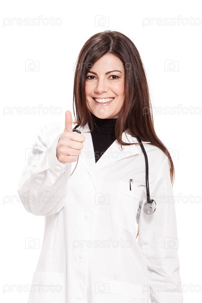 Привлекательная женщина-врач на белом фоне