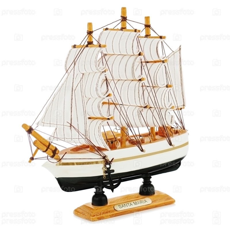 Старая модель парусника белом фоне