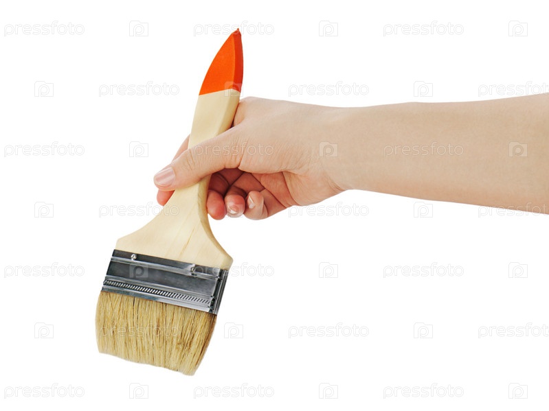 Женская рука с кистью на белом фоне
