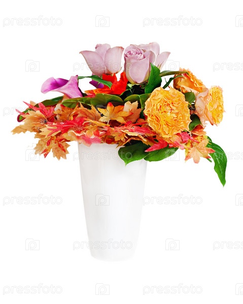 Цветочный букет в белой вазе на белом фоне