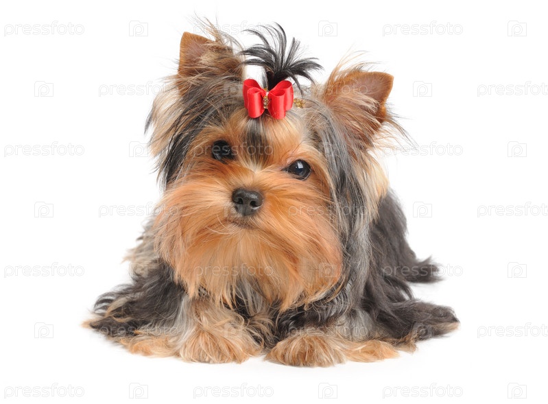 Йоркширский терьер с красным бантом