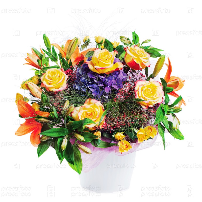 Цветочный букет в белой вазе на белом фоне