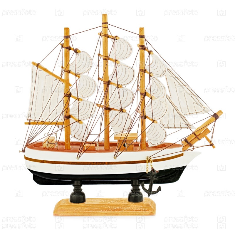 Модель парусника, изолирована на белом фоне