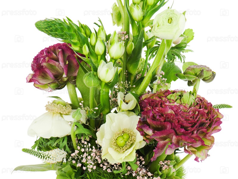 Фрагмент красочного букета крупным планом на белом фоне