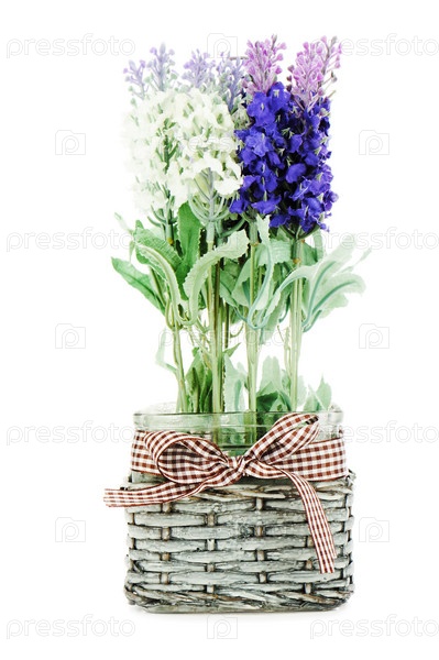 Композиция из искусственных садовых цветов, изолированана белом фоне
