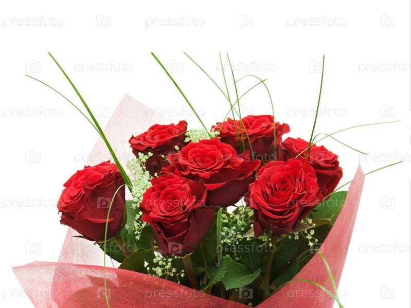 Букет из красных роз на белом фоне