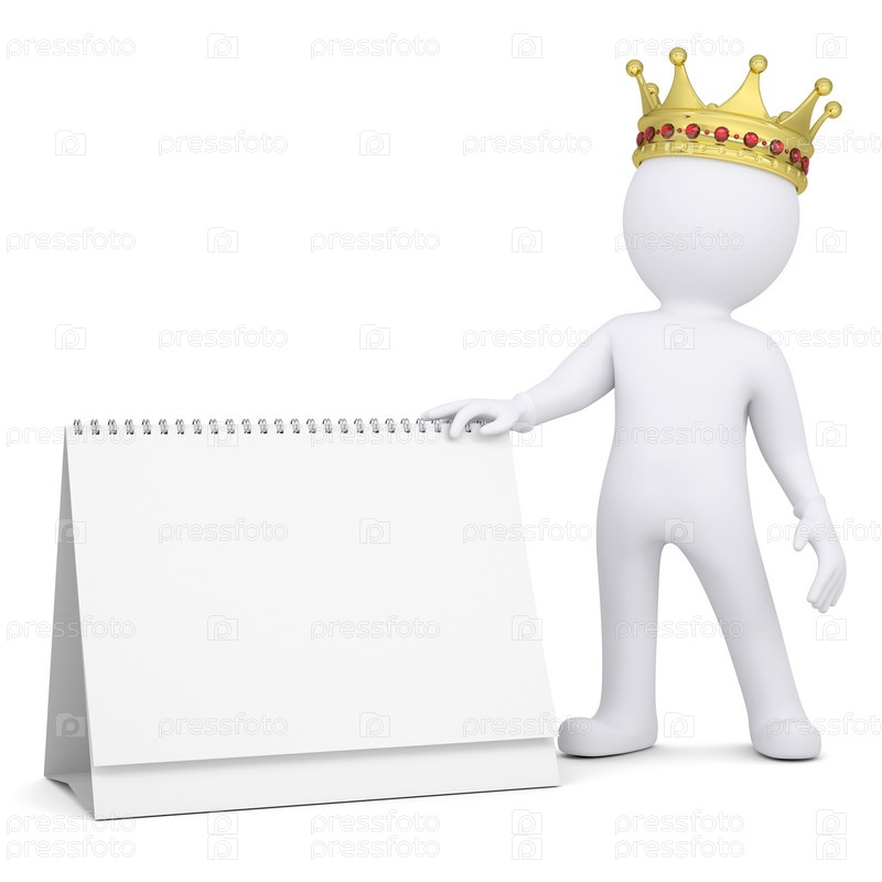 3D белый человек с короной держит переносимый календарь