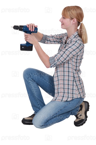 Женщина делает отверстие в стене