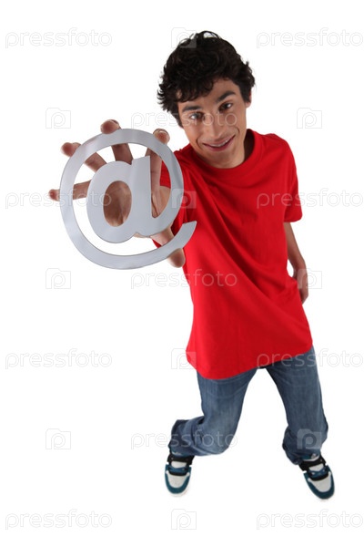 Молодой человек с символом "собака"