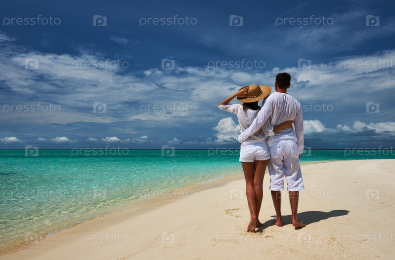 Пара на пляже на Мальдивах