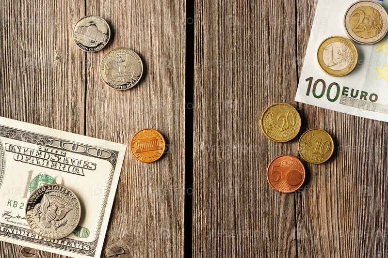 Доллары и евро на деревянном фоне