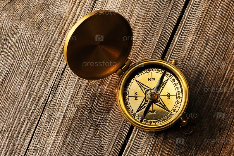 Античный компас на деревянном фоне