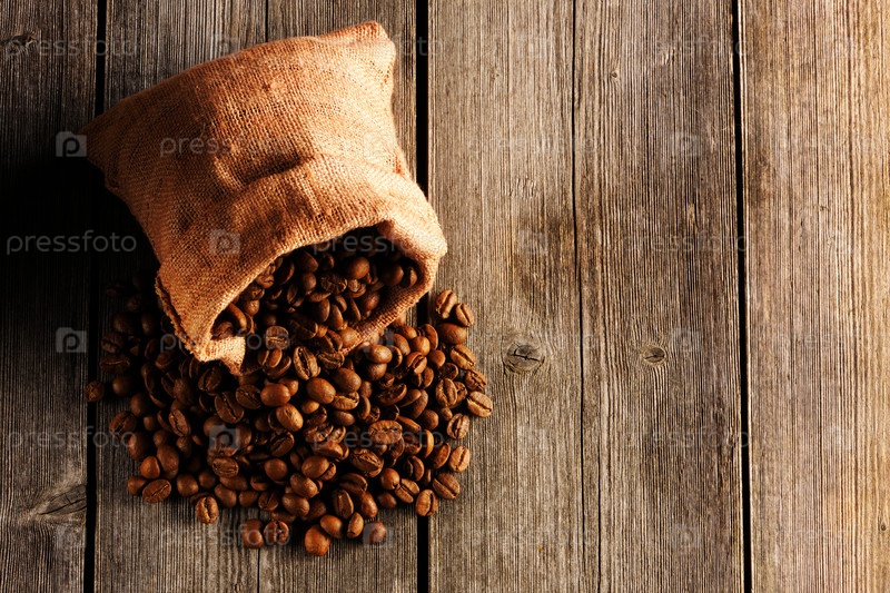 Кофе в зернах и мешок, фон