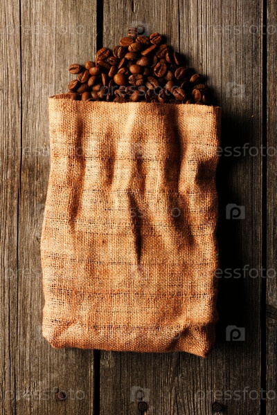 Кофе в зернах и мешок, фон