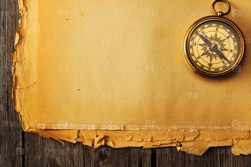 Антикварный медный компас на старой карте