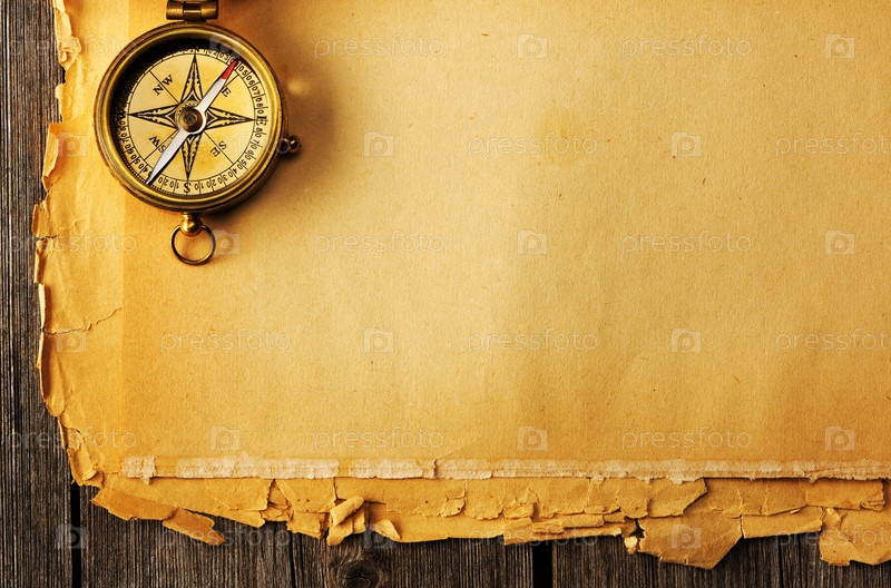 Антикварный медный компас на старой карте