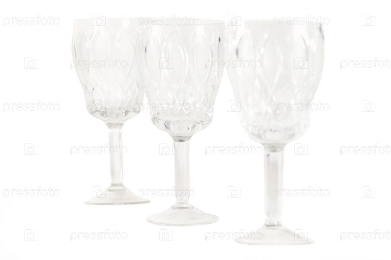 Хрустальные бокалы на белом фоне