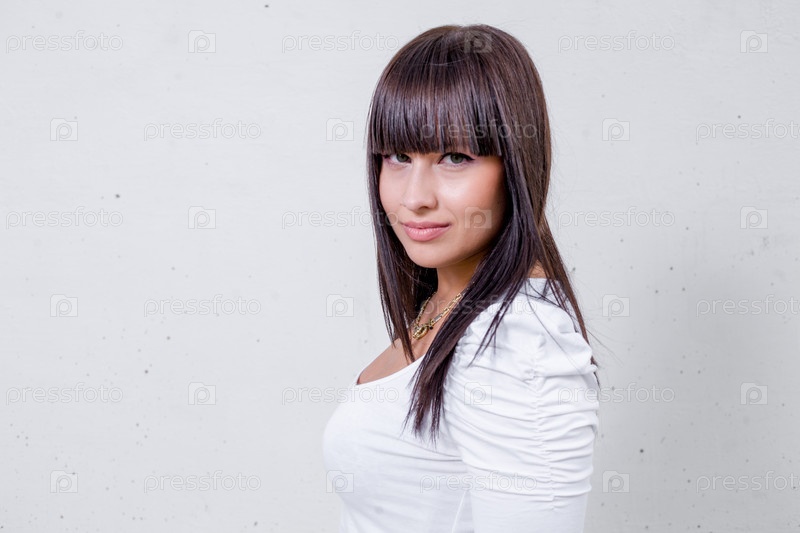 Красивая девушка стоит перед стеной