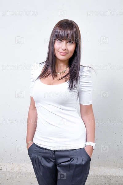 Красивая девушка стоит перед стеной