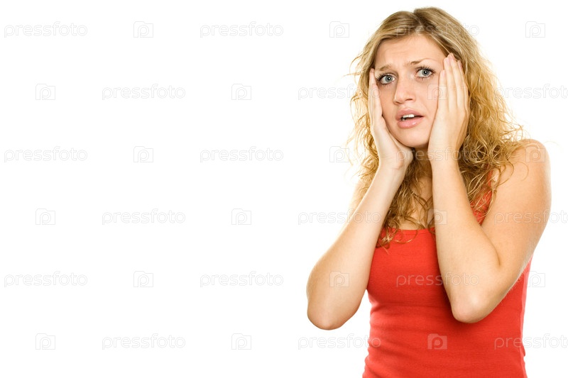 Испуганная девушка на белом фоне