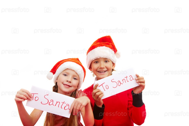 Мальчик и девочка с письмами Санта-Клаусу