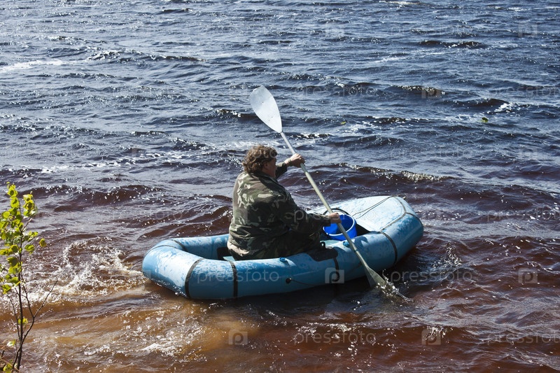 Турист в резиновой лодке на воде
