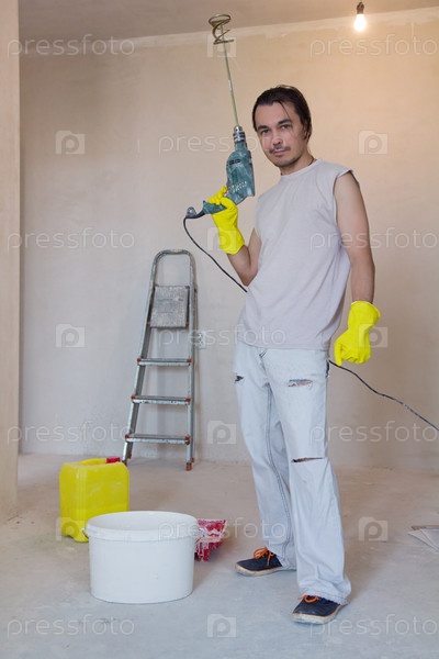 Рабочий с электрической дрелью