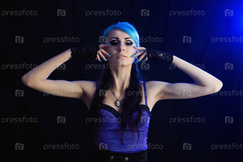 Готическая девушка с голубыми волосами