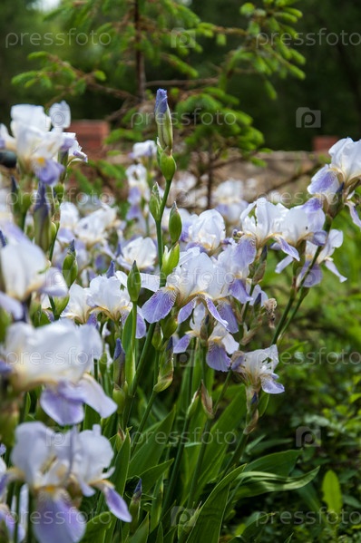 Сад с ирисами (касатиками). Идеально подходит для ландшафтного дизайна