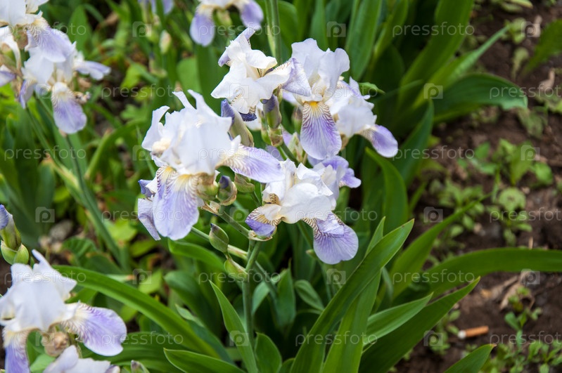 Сад с ирисами (касатиками). Идеально подходит для ландшафтного дизайна