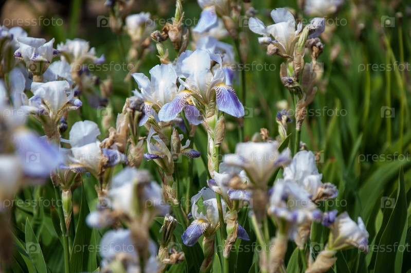 Сад с ирисами (касатиками). Идеально подходит для ландшафтного дизайна
