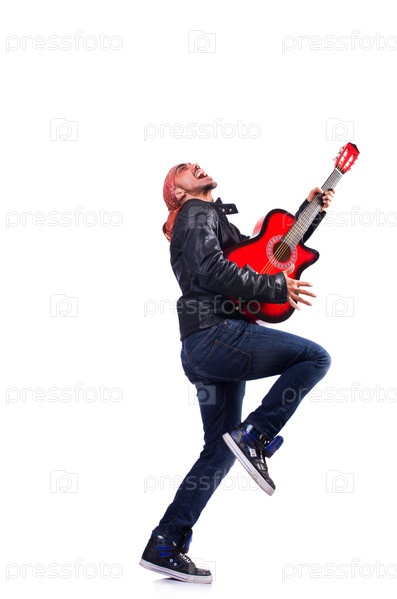 Гитарист, изолированный на белом фоне