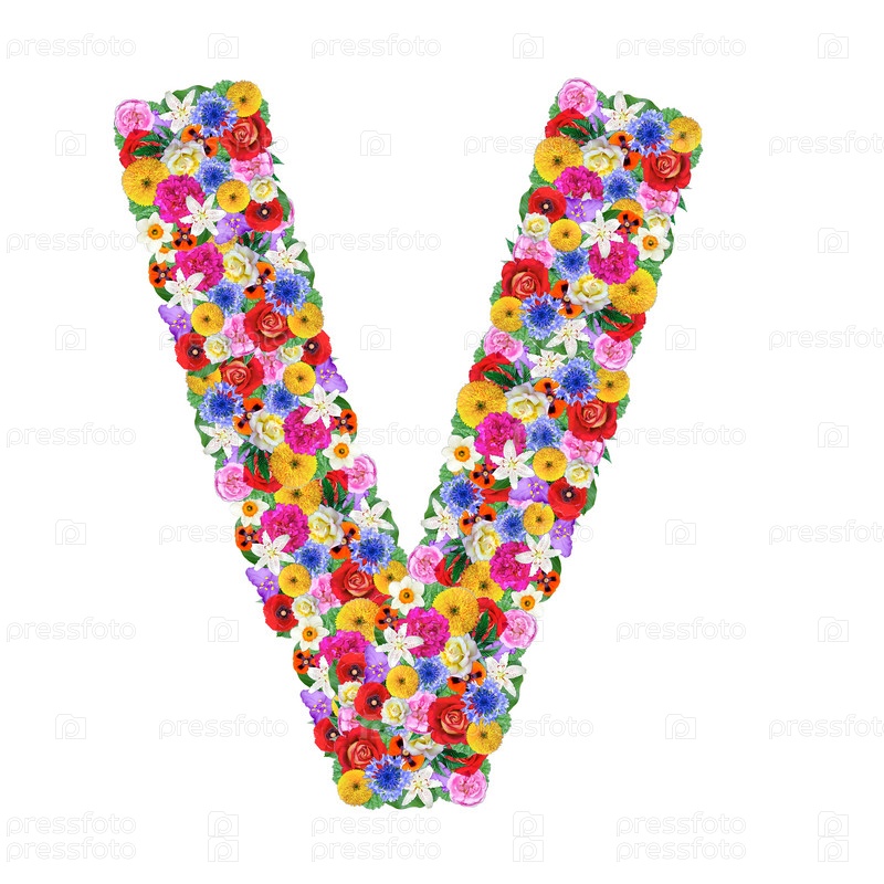 Цветовая буква V алфавита, изолированная на белом фоне